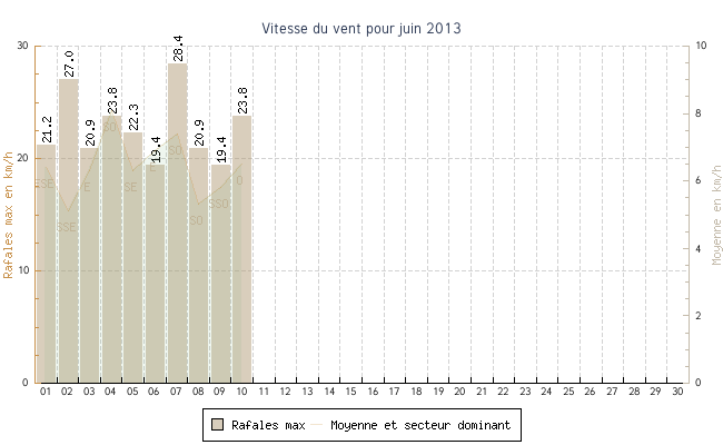 | min | max | moy | Vitesse (rafales) | Secteur | ||